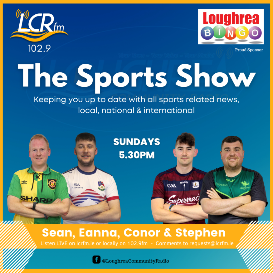 A dedicated show covering all local sports as well as national and international updates and fixtures. The show also features a weekly local rundown. With thanks to show sponsor Loughrea Bingo and local rundown sponsor Man and Van Loughrea.
